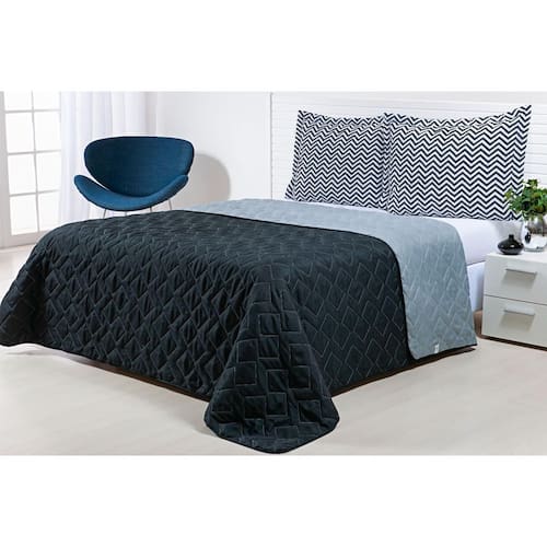 Cobre Leito Viúva 3 Peças Microfibra Dupla Face Chevron Preto THAIS ENXOVAIS Cobre Leito Matelado Viúva 3 Peças Microfibra Dupla Face 01 Cobre Leito Bordado Dupla Face 2,10m x 2,40m com Viés em toda volta. 02 Porta Travesseiro Bordado 70cm x 50cm Cor: Cobre leito de um lado preto do outro lado cinza podendo ser Utilizado dos 2 dois lados. Porta Travesseiro Estampa Jornal. Composição: Tecido Superior e Inferior: Microfibra 100% Poliéster Enchimento: Manta 100% Poliéster Não acompanha os enchimentos dos travesseiros. Marca: Thais Enxovais