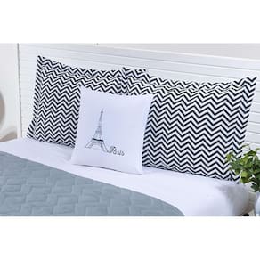 Cobre leito viuva 5 peças microfibra dupla face chevron paris Thais enxovais Cobre leito de viuva 5 peças microfibra dupla face paris 1 cobre leito dupla face paris 2,05m x 2,30m acabamento com vies na volta inteira 2 porta travesseiro matelado 0,70cm x 0,50cm 01 almofada com detalhe bordado 0,45 x 0,45 01 enchimento de almofada flocos de espuma 0,45 x 0,45 Não acompanha os enchimento dos travesseiros Cor cobre leito 1 lado preto e 1 lado cinza ,podendo ser dois lados. Composiçao Tecido microfibra 100% poliester enchimento 100%poliester Marca: Não Informado Ean: 7895130400171