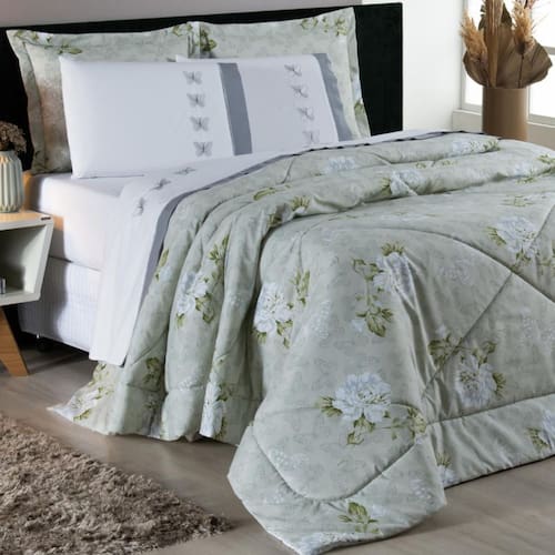 01 Edredom 2,60m x 2,40m 02 Porta-Travesseiros Estampado 75cm x 55cm