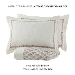 Com a estampa marcante de arabescos em tom vinho, o cobreleito Nissi combina perfeitamente com o jogo de cama da mesma linha, criando um conjunto harmonioso e sofisticado. Produzido em puro algodão egípcio, percal 300 fios acetinado, oferece um toque suave e macio que convida ao aconchego. Seu enchimento leve garante conforto ideal para todas as estações, sendo perfeito tanto para uso decorativo quanto funcional.