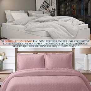 O Cobre Leito Queen Melinda 300 Fios é perfeito para quem busca conforto elevado com acabamento de luxo. Confeccionado em algodão percal 300 fios, proporciona toque suave, frescor para o corpo e elegância inconfundível no visual do quarto.