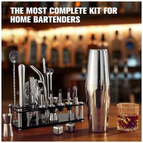 Conjunto de 23 unidades para coquetel Kit de bn KINGROW Boston, um conjunto para atender a todas as suas necessidades Kit de ferramentas de bar. Consiste em um conjunto de latas Boston Shaker de 20 onças e 24 onças, 4 produtos, copo de medição duplo 15 , 30ml e 25 , 50ml, uma pinça de gelo, um Muddler, 2 colheres de canudos, 2 canudos dobrados, um saca rolhas, uma escovas, uma mistura Colher, 4 Pedras de Aço Inox, Receita de Coquetel, Pinça de Pedras, Coador, Suporte de Acrílico, E tem um guia de receitas exclusivo, que facilita o uso para iniciantes.