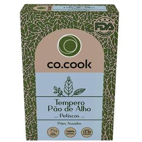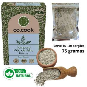 Cocook Especiaria Natural Tempero Pão de Alho Petiscos 75g Pão de alho delicioso em minutos, sem complicação Nosso tempero exclusivo combina a intensidade do alho com a praticidade que você precisa. Para um preparo rápido e saboroso, misture nosso tempero com e/ou maionese e espalhe sobre o pão. Leve ao forno ou churrasqueira, e pronto Desfrute de um pão de alho incrivelmente saboroso sem perder tempo na cozinha. Ideal para quem busca praticidade sem abrir mão do sabor autêntico. Transforme seus momentos de lazer em experiências gastronômicas memoráveis Ingredientes: cebola, alho, salsa, endro. Validade de 2 anos Por 100 g 5 g, %VD : Valor energético 284 kcal 14 kcal, 1% Carboidratos 59 g 2,9 g, 1% , dos quais Açúcares totais 0,0 g 0,0 g , Açúcares adicionados 0 g 0 g, 0% Proteínas 11 g 0,6 g, 1% Gorduras totais 3 g 0,1 g, 0% , das quais Gorduras saturadas 3,5 g 0,2 g, 0% , Gorduras trans 0 g 0 g, 0% Fibras alimentares 13 g 0,6 g, 3% Sódio 17 mg 0,88 mg, 0% .