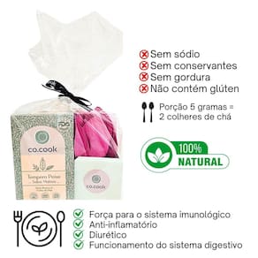 O kit CoCook Trio Presente é perfeito para surpreender alguém especial ou renovar sua cozinha com ingredientes de alta qualidade e um toque decorativo inovador. Especificações: Peso total: 210g 75g + 75g + 60g Validade dos temperos: 2 anos Dimensões do porta-guardanapo: 8cm x 10cm x 14cm Garanta já o seu Leve autenticidade, sabor e elegância para sua mesa Marca: Não Informado