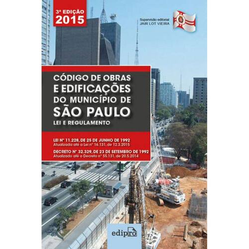 Lei n° 11.228 de 25.06.1992, atualizada com as últimas alterações. Decreto n° 32.329 de 23.09.1992, atualizado até DOM de 10.04.2015. Edição atualizadíssima contendo as exigências e especificações da PREFEITURA MUNICIPAL DE SÃO PAULO, que devem ser obedecidas nos projetos, licenciamentos, execução, manutenção e utilização de obras e edificações no Município da Capital.