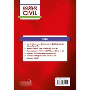 SUPERLANÇAMENTO: Código de Processo Civil – Lei nº 13.105, de 16 de março de 2015 Atualizado até a Lei nº 14.365, de 2 de junho de 2022, e até o DOU de 17 de fevereiro de 2023 Lei de Introdução às Normas do Direito Brasileiro e Regulamento Resoluções do TST e Resoluções do CNJ Enunciados do FPPC, da ENFAM, do CJF e do STJ Súmulas e Súmulas Vinculantes do STF Temas com Repercussão Geral do STF Súmulas do STJ Índice remissivo Notas remissivas
