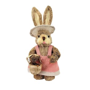 Coelha De Palha Rosa 35X15X14Cm Decoração De Páscoa