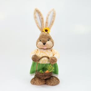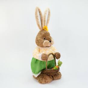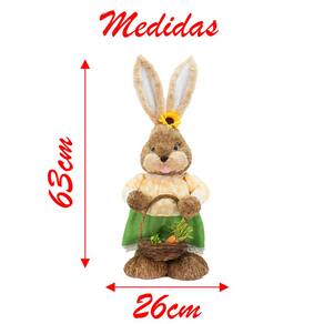Coelha De Páscoa em Palha Enfeite Coelhinha Jardineira 63cm -