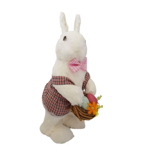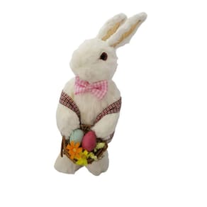 Coelha com 40cm de altura, estrutura de EPS e revestido com fios de algodão Torcidos na cor branca. As orelhas confeccionadas com fios de algodão torcidos na cor branca e parte interna com juta bege, o vestido xadrez com renda branca, ;a gravata borboleta xadrez rosa e a cesta em cipó natural com ovinhos e flores, ;são detalhes que dão um charme a parte e a deixa mais fofa e charmosa. Confeccionada com materiais PREMIUM e acabamento finíssimo, linda, perfeita! Ideal para usar sobre aparador, balcão, hall de entrada, mesa de escritório, vitrines de comércio ou onde sua imaginação te levar!