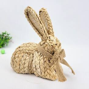 Fibra natural de alta qualidade: Feito com materiais naturais, o coelho traz um estilo rústico e elegante, perfeito para dar vida ao seu espaço. Design encantador: O coelho é delicadamente trabalhado e finalizado com um laço que adiciona um toque de sofisticação e delicadeza à peça. Versátil e decorativo: Ideal para complementar mesas, prateleiras, arranjos de Páscoa ou até mesmo como peça principal de decoração em diversos ambientes.