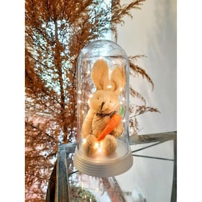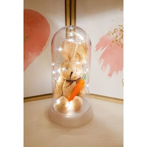 Produto exclusivo amor lindo boutique, fabricação própria, de alta qualidade, produto 100% seguro para crianças e adultos. Luminária redoma cúpula encantada com coelho de pelúcia com cenoura 19 cm -bege. Especificação técnica: - marca: amor lindo boutique - altura: 19 cm - diâmetro: 10 cm - material da redoma: acrílico e plástico - material da pelúcia: tecido, com enchimento de algodão, não-tóxico. - material da cenoura: plástico - material do fio de led: metais e plástico - cúpula de acrílico translúcido - base de plástico na cor branco pérola - micro luzes de leds / luzes de fadas que, funcionam com apenas 2 baterias cr 2032 já inclusas Características: 1. Produto feito à mão. 2. A luminária é funcional e além disso pode ser Utilizado para compor a decoração da sua casa, do seu quarto, da sua empresa ou da sua festa. 3. A luminária pode ser dada de presente, como símbolo de amor e gratidão. 4. É o presente perfeito para a páscoa, dia das crianças, dia dos namorados, dia das mães, aniversários, ou qualquer ocasião que mereça um presente único e precioso. 5. Pode ser para decorar festas, fica simplesmente incrível e todos ficam encantados. Marca: Não Informado