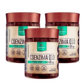 3X Coenzima Q10 100Mg 60 Cápsulas - NutrifyA Coenzima Q10 é uma molécula essencial para a transferência de energia nas mitocôndrias, proporcionando suporte mitocondrial e mais energia para o seu dia. E agora, a Nutrify traz a Coenzima Q10 em sua forma mais pura, adicionada de vitamina E, um poderoso antioxidante que auxilia na proteção contra os danos causados pelos radicais livres. Com sua fórmula vegana, a Coenzima Q10 Nutrify é perfeita para todos os públicos, sendo produzida com matéria-prima vegana e cápsulas vegetais. Além disso, a Coenzima Q10 100mg possui diversos benefícios para a saúde.A Coenzima Q10 atua no combate aos sinais de envelhecimento, proporcionando proteção celular e prevenindo o fotoenvelhecimento. Com sua ação antioxidante, ela reduz os radicais livres, ajudando a manter a pele saudável e com aspecto jovem. Além disso, a CoQ10 aumenta a oxigenação tecidual, o que contribui para a amenização de rugas e melhora da elasticidade e firmeza da pele.Além dos benefícios estéticos, a Coenzima Q10 também traz benefícios para a saúde em geral. Ela auxilia no controle do colesterol e triglicérides, contribuindo para a saúde cardiovascular. Além disso, a CoQ10 é essencial para o bom funcionamento do cérebro e melhora o desempenho de exercícios físicos, fornecendo energia para o organismo. A marca Nutrify é reconhecida por sua qualidade e compromisso em oferecer produtos de excelência. A Coenzima Q10 Nutrify é produzida com os melhores ingredientes, garantindo sua eficácia e segurança.Ingredientes:- Coenzima Q10- Vitamina E acetato de DL-alfatocoferol - Estabilizante celulose microcristalina- Lubrificante estearato de magnésio - Cápsula verde: estabilizante hidroxipropilmetilcelulose, glaceantes carragena e acetato de potássio e corante clorofilina cúprica.Sugestão de uso:Recomenda-se o consumo diário de 2 cápsulas, conforme orientação médica ou de profissional especializado.