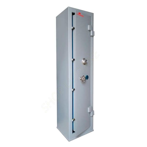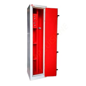 Segredo mecânico de 03 combinações e fechadura tipo tetra; Estrutura do cofre: Corpo fabricado em chapa de 1mm e porta em chapa 2mm. Porta com 04 travas maciças de 18mm de diâmetro. Pintura em esmalte sintético. Gavetas com fechaduras. O cofre já vai com 04 furos na parte de trás para fixação na parede.