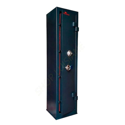 Segredo mecânico de 03 combinações e fechadura tipo tetra; Estrutura do cofre: Corpo fabricado em chapa de 1mm e porta em chapa 2mm. Porta com 04 travas maciças de 18mm de diâmetro. Pintura em esmalte sintético. Gavetas com fechaduras. O cofre já vai com 04 furos na parte de trás para fixação na parede.