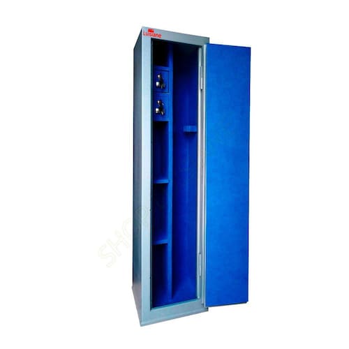 Segredo mecânico de 03 combinações e fechadura tipo tetra; Estrutura do cofre: Corpo fabricado em chapa de 1mm e porta em chapa 2mm. Porta com 04 travas maciças de 18mm de diâmetro. Pintura em esmalte sintético. Gavetas com fechaduras. O cofre já vai com 04 furos na parte de trás para fixação na parede.