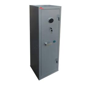 Estrutura do cofre: Corpo fabricado em chapa de 1mm e porta em chapa 2mm. Porta com 04 travas maciças de 18mm de diâmetro. Pintura em esmalte sintético. Gavetas com fechaduras. O cofre já vai com 04 furos na parte de trás para fixação na parede.