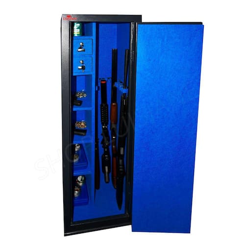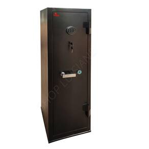 Estrutura do cofre: Corpo fabricado em chapa de 1,2mm e porta em chapa 2mm. Porta com 04 travas maciças de 18mm de diâmetro. Pintura em esmalte sintético. Gavetas com fechaduras. O cofre já vai com 04 furos na parte de trás para fixação na parede.