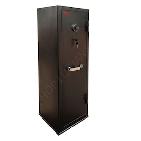 Estrutura do cofre: Corpo fabricado em chapa de 1mm e porta em chapa 2mm. Porta com 04 travas maciças de 18mm de diâmetro. Pintura em esmalte sintético. Gavetas com fechaduras. O cofre já vai com 04 furos na parte de trás para fixação na parede.
