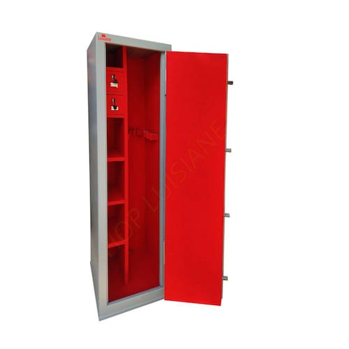 Estrutura do cofre: Corpo fabricado em chapa de 1mm e porta em chapa 2mm. Porta com 04 travas maciças de 18mm de diâmetro. Pintura em esmalte sintético. Gavetas com fechaduras. O cofre já vai com 04 furos na parte de trás para fixação na parede.