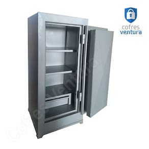 MEDIDAS EXTERNAS: Altura: 80 Centímetros; Largura: 37 Centímetros; Profundidade: 33 Centímetros; MEDIDAS INTERNAS Altura: 62 Centímetros; Largura: 32 Centímetros; Profundidade: 20 Centímetros; PESO 90 kg; Segredo mecânico de 03 combinações e fechadura tipo moveis; Estrutura do cofre: Corpo fabricado em chapa externa de 1mm camada de concreto, chapa interna de 0,9 mm e porta em chapa 1,2mm. Porta com 02 travas maciças de 18mm de diâmetro. Pintura em esmalte sintético. Marca: COFRES VENTURA