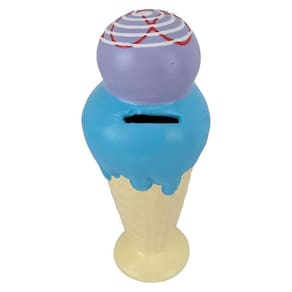 O cofrinho de moedas de gesso com formato de sorvete de casquinha é uma peça divertida e funcional para guardar suas economias. Com detalhes realistas e compacto, é uma opção criativa de decoração e presente.
