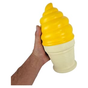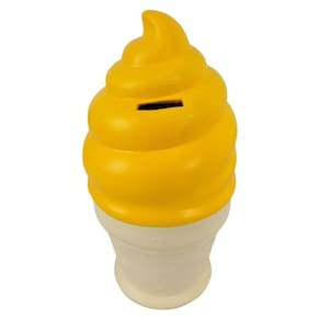 O cofrinho de moedas de gesso com formato de sorvete é uma peça divertida e funcional para guardar suas economias. Com detalhes realistas e compacto, é uma opção criativa de decoração e presente.