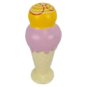 O cofrinho de moedas de gesso com formato de sorvete de casquinha é uma peça divertida e funcional para guardar suas economias. Com detalhes realistas e compacto, é uma opção criativa de decoração e presente.