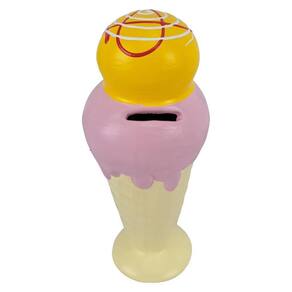 O cofrinho de moedas de gesso com formato de sorvete de casquinha é uma peça divertida e funcional para guardar suas economias. Com detalhes realistas e compacto, é uma opção criativa de decoração e presente.
