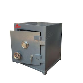 Estrutura do cofre: Corpo fabricado em chapa de 1mm e porta em chapa 2mm. Porta com 02 travas maciças de 18mm de diâmetro. Pintura em esmalte sintético.