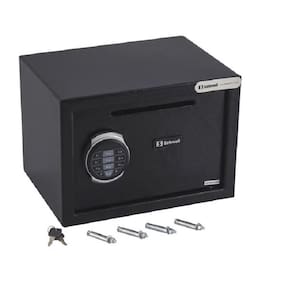 Construção sólida em aço, proteção ideal contra roubo e perfeito para guardar joias, dinheiro, documentos. Trava unidirecional (20mm) e abertura frontal para efetuar depósitos, sem ter a necessidade de abrir o cofre. Utilize os furos de fixação da parte de baixo e traseira do cofre para instalá-la em paredes ou em pisos, com os parafusos para montar incluídos. Excelente acabamento em pintura eletrostática em pó (Powder Coating). O teclado é bloqueado por cinco minutos se o código é ingressado seis vezes incorretamente. Inclui um código de usuário de 3 à 8 dígitos.