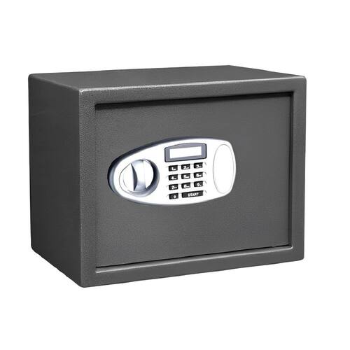 Construção sólida em aço, proteção ideal. Trava unidirecional (20mm). Utilize os furos de fixação da parte de baixo e traseira da caixa-forte para instalá-la em paredes ou em pisos, com os parafusos para montar incluídos. Excelente acabamento em pintura eletrostática em pó (Powder Coating). Tela de LCD. O teclado é bloqueado por cinco minutos se o código é ingressado seis vezes incorretamente.