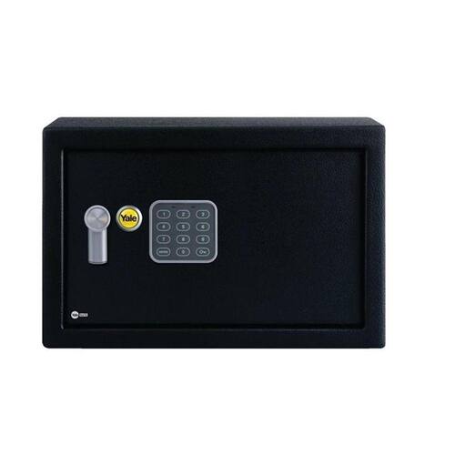 Cofre Eletrônico De Senha Yale Value Home YSV/250/DB1Descrição RápidaCaracterísticas- Abertura por Senha ou Chave de Segurança.- Cofre ideal para aplicações residenciais.- Dimensões externas: 250x350x250mm (A x L x P).- Dimensões internas: 240x340x200mm (A x L x P).Detalhes- Abertura por Senha ou Chave de Segurança.- Funcionamento com 4 pilhas.- Display Digital.- Forro de carpete.- Dobradiças reforçadas.- Sinaliza quando a bateria está acabando.- Travas a prova de impacto.- Acabamento em pintura Epoxi.- Dimensões externas: 250x350x250mm (A x L x P).- Dimensões internas: 240x340x200mm (A x L x P).Itens que acompanham o produto- 02 Chaves de Segurança.- 04 Pilhas AA.- Parafusos e Bucha para fixação.- Manual do Usuário em Português.