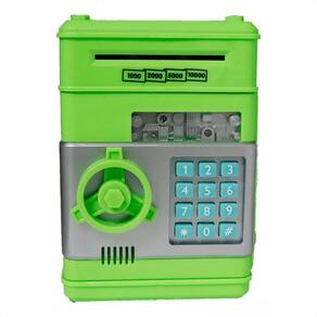 Cofre Eletrônico Digital Infantil Verde XR011 PCI:O Cofre Eletrônico Digital Infantil Verde XR011 PCI é um item indispensável para auxiliar as crianças a desenvolverem o hábito de poupar de forma divertida e segura. Com um design colorido e funcional, este cofre eletrônico é ideal para guardar notas e moedas de maneira prática e lúdica.Fabricado pela marca PCI Cofres, o modelo XR011 na cor verde possui mecanismos de abertura com combinação eletrônica, garantindo a segurança dos itens guardados. Além disso, conta com a função de entrada automática de notas, que proporciona uma experiência única ao puxar a nota para dentro do cofre.Com lugares de colocação versáteis, como bancada, estante, mesa e quarto, o Cofre Eletrônico Digital Infantil Verde XR011 PCI se destaca pela sua praticidade e funcionalidade. Seu design atrativo e tecnologia de ponta tornam este produto uma excelente escolha para incentivar a educação financeira desde cedo.Principais características ou Diferenciais:1. Mecanismos de abertura com combinação eletrônica para segurança. 2. Função de entrada automática de notas, proporcionando praticidade. 3. Design colorido e atrativo, ideal para crianças. 4. Versatilidade de lugares de colocação. 5. Marca renomada no segmento de cofres. 6. Tecnologia de ponta em um produto infantil.Indicado para:- Auxiliar as crianças a desenvolverem o hábito de poupar- Estimular a educação financeira desde cedo- Guardar notas e moedas de forma segura e divertida- Proporcionar uma experiência única ao puxar a nota para dentro do cofre- Decorar o ambiente infantil de forma funcional- Presentear crianças em datas especiaisCompatível com:- Compatível com ambientes infantis, como quartos e brinquedotecas- Pode ser colocado em diferentes locais, como bancadas e mesas- Ideal para crianças que estão aprendendo sobre a importância de poupar e organizar suas economiasDicas de Uso:Para utilizar o Cofre Eletrônico Digital Infantil Verde XR011 PCI, basta inserir as notas e moedas no compartimento apropriado e programar a combinação eletrônica para garantir a segurança dos seus pertences. Dados Técnicos: Marca: PCI Cofres Modelo: Verde, XR011 Material: Plástico ABS de alta qualidade Tamanho: 19,5 cm de altura, 13 cm de largura e 12 cm de comprimento2 Funcionalidades: Entrada automática de cédulas com sistema de puxador Aceita moedas Luzes LED e efeitos sonoros Abertura protegida por senha eletrônica de 4 dígitos, personalizável Segurança: Certificado pelo INMETRO Itens inclusos: Cofre brinquedo XR011, manual de instruções Recomendação: Adequado para crianças a partir de 3 anos Marca: Não Informado