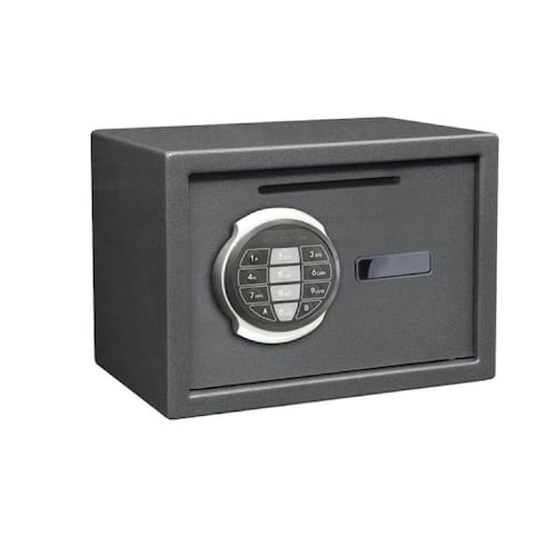 Esse cofre possui uma trava unidirecional de 20mm e uma abertura frontal que permite fazer depósitos sem a necessidade de abrir o cofre. Além disso, você pode fixá-lo em paredes ou pisos utilizando os furos de fixação na parte de baixo e traseira, e os parafusos para montar já estão inclusos.
