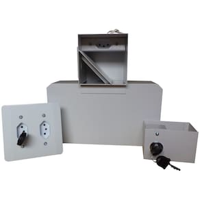 cofres são uma das formas de guardar seus pertences. . Melhor ainda é quando o modelo pode ser utilizado como disfarce, assim deixando seus pertences de valor guardados de modo que ninguém perceba onde está. O cofre tomada é embutido na parede com duas tomadas, sendo uma delas a chave para a abertura e o fechamento, assim obtendo o disfarce perfeito, e tendo mais segurança e tranquilidade. Este tipo de cofre é utilizado para guardar pequenos objetos, ou valores como: dinheiro, jóias, cartão de credito entre outros, este modelo pode ser instalado em residencias, empresas e comércios em geral. Estes modelos são considerados extremamente seguros e eficientes. Especificações: