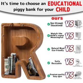 Ladenk Cofrinho de madeira extra grande de 30,5 cm para meninos e meninas - 🎁?Extra grande, mais capacidade? Ouvimos as vozes de muitos clientes, disseram que nosso banco de cartas não é grande o suficiente, então fizemos um banco extra maior para economizar mais dinheiro, este tamanho de banco de cartas é de 30 cm, o suficiente para economizar as moedas e o dinheiro das crianças! - 🎁?Brinquedos educativos MONTESSORI? Veja através do cofrinho na frente do uso de acrílico transparente, pode atrair as crianças para observar o crescimento das economias, para que elas gostem de economizar, desenvolver o hábito de aprender a economizar desde cedo. Escolha um banco com as iniciais correspondentes aos nomes das crianças, um presente exclusivo para meninos e meninas de qualquer idade. - 🎁?Artesanato de alta qualidade?Nosso banco é feito de nogueira ou carvalho de alta qualidade, mais resistente e durável, o banco foi polido várias vezes, tratamento de óleo natural não tóxico, tornando a aparência mais suave e confortável. - 🎁?Fácil de abrir?Quando você quiser abri-lo, você só precisa desparafusar alguns parafusos, remover o vidro para tirar as moedas e depois colocá-lo de volta para continuar a usar, porque é feito de madeira de alta qualidade, pode ser utilizado por um longo tempo, seguro e ecológico - 🎁?SERVIÇO LADENK?Se você tiver alguma dúvida no banco, ou precisar que personalizemos o seu banco, , fornecemos serviço de gravação a laser de nome completo, podemos gravar o conteúdo que você deseja na frente e no verso, isso beneficiará seu filho por toda a vida.
