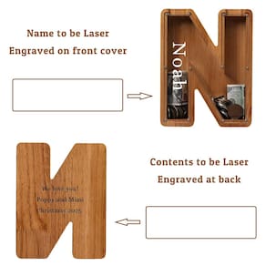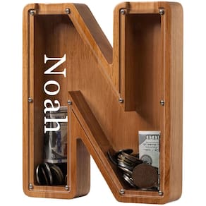 Cofrinho infantil grande de madeira personalizado - (gravado a laser) cofrinho personalizado para meninos e meninas - Bancos de madeira com iniciais - Alfabeto caixa de dinheiro banco de aniversário - Material e tamanho: este grande cofrinho de madeira é feito de carvalho e acrílico, de boa qualidade e durável, após tratamento de óleo natural não tóxico, o cofrinho transparente permite intuitivamente que as crianças observem o crescimento das economias, personalização feita à mão, o cofrinho grande de 23 cm permite mais espaço para manter seu dinheiro - Brinquedos educativos: este cofrinho de madeira é o melhor presente para meninos e meninas de qualquer idade, os cofres transparentes podem registrar seu crescimento. O uso de plexiglass transparente permite que as crianças observem quanto dinheiro economizaram para promover uma sensação de economia desde tenra idade - Fácil de abrir: quando você quiser abri-lo, você só precisa desparafusar alguns parafusos, remover o vidro para tirar a moeda e, em seguida, juntá-la novamente e você pode continuar usando, porque é feito de madeira de carvalho de alta qualidade, pode ser utilizado por um longo tempo e seguro e ecológico - Nome gravado a laser: De acordo com os desejos de nossos clientes, agora apoiamos a gravação a laser de nomes e gravaremos o texto que você precisa no acrílico do seu cofrinho de cartas. Dura ao seu filho uma vida inteira - Presente perfeito: este cofrinho de madeira personalizado é um presente exclusivo para adultos ou crianças, adequado para aniversários, Natal, férias, chá de bebê, etc., qualquer problema com nosso banco inicial de madeira, , resolveremos o problema para você na primeira vez