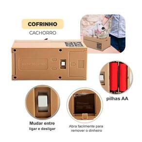 Uma forma divertida de guardar sua economias! Alimente o cãozinho com suas moedas. Ele come todas as suas moedas assim que colocá-las na tigela e só para de se alimentar quando as moedas da tijela acabam. Elas ficarão armazenadas no interno do cofre e poderá as retirar quando quiser!
