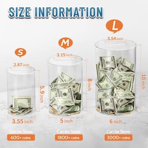 cofrinho - ?Cofrinho não aberto?Design sem abertura O cofrinho transparente está completamente fechado, exceto por um compartimento para moedas. Escolha este incrível pote de poupança que pode ser aberto para motivá-lo a economizar dinheiro todos os dias! A melhor escolha para adultos cofrinho para economizar dinheiro para 2023, ideal para planos de poupança - ?Pote de poupança transparente?Nossos bancos economizadores são feitos de acrílico altamente transparente, mais durável do que os bancos de dinheiro de cerâmica e muito mais fáceis de abrir do que mealheiros de aço inoxidável difíceis de abrir. O acrílico transparente permite que você verifique fundos a qualquer momento. Aproveite a diversão do crescimento do dinheiro - ?Faça você mesmo seu próprio banco? Você pode fazer você mesmo este cofrinho transparente com tintas ou adesivos a óleo, o que é prático e decorativo. Adicione um pouco de criatividade pessoal ao seu banco de moedas, e economizar dinheiro será mais fácil! Vamos começar a fazer você mesmo! Eles estão prontos para invadir sua casa e trazer um pouco de vida a qualquer espaço - ?Design para todos?Este pote de economia transparente vem em 3 opções de tamanho adequado para adultos e crianças! Você pode usar o pequeno banco de economia para ensinar as crianças a economizar dinheiro ou orçamento. O cofrinho de porco médio ou grande para adultos pode ser um lindo presente de aniversário, Natal, Ano Novo ou Dia das Bruxas para alguém que você ama - ?Deve quebrar para abrir?Para obter o seu dinheiro com este cofrinho apenas dentro e sem saída, use um martelo para abri-lo. Recomenda-se abri-lo apenas quando o alvo for atingido ou em casos de emergência. Uma vez que o Banco Econômico for aberto, ele será destruído. Se você tiver alguma dúvida, sinta-se à vontade para nos consultar