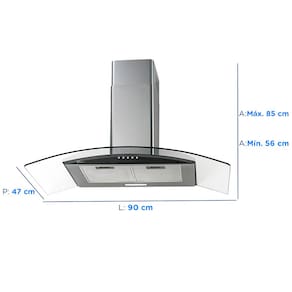CARACTERISTICAS - Vidro temperado - Velocidades: 3 niveis - Acabamento em aco inox 430 escovado e vidro preto - Acompanha filtro de aluminio -lavavel manualmente ou em lavadora de loucas- - Acompanha filtro de carvao ativado - Funcao exaustor - Funcao depurador - Controle eletromecanico - Lampada LED 1 X 2,5W