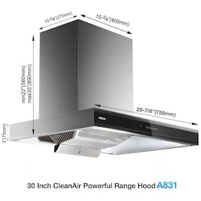 Uso indicado: Cozinha residencial com instalação em parede sobre fogão de 30 polegadas, com possibilidade de exaustão por duto ou recirculação com filtro de carvão ativado
