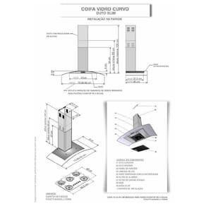 As dimensoes do produto podem sofrer uma pequena variacao de largura do vidro, de ate 7 sete milimetros. Por este motivo, quando a coifa for instalada de forma embutida em nichos, o fabricante recomenda que seja considerada uma folga de pelo menos 1 cm em cada lado