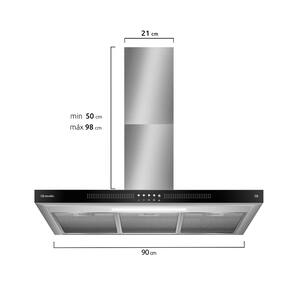 Equipada com três velocidades de sucção, a coifa permite ajustar a potência conforme o tipo de preparo, garantindo maior eficiência na remoção de fumaça, vapores e odores.
