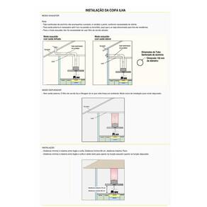 As dimensões do produto podem sofrer uma pequena variação de largura do vidro, de até 7 sete milímetros. Por este motivo, quando a coifa for instalada de forma embutida em nichos, o fabricante recomenda que seja considerada uma folga de pelo menos 1 cm em cada lado