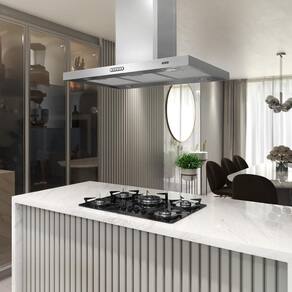 Coifa Ilha 75cm Retangular Terim Inox 110v Deixe sua cozinha mais moderna com a Coifa de Ilha Retangular da Terim Alem de pratica e bonita, possui a base e dutos em inox e acompanha filtro de aluminio e filtro de carvao ativado. A coifa pode ser instalada de dois modos distintos, como exaustor ou como depurador. Com design diferenciado, que facilita sua limpeza, iluminacao com lampadas de led e tres velocidades. Traga mais versatilidade para sua cozinha. Para Fogao cooktop de 4 bocas e indicado coifa de 60 ou 70 cm Para Fogao cooktop de 5 bocas e indicado coifa de 75, 80 ou 90 cm Para Fogao cooktop de 6 bocas e indicado coifa de 90 cm ou mais Observacao importante, sempre observar a largura do seu fogao, para que a largura da coifa seja sempre um pouco maior que o fogao cooktop