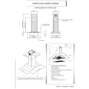 As dimensões do produto podem sofrer uma pequena variação de largura do vidro, de até 7 sete milímetros. Por este motivo, quando a coifa for instalada de forma embutida em nichos, o fabricante recomenda que seja considerada uma folga de pelo menos 1 cm em cada lado
