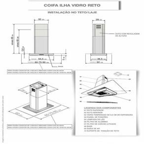 As dimensoes do produto podem sofrer uma pequena variacao de largura do vidro, de ate 7 sete milimetros. Por este motivo, quando a coifa for instalada de forma embutida em nichos, o fabricante recomenda que seja considerada uma folga de pelo menos 1cm em cada lado