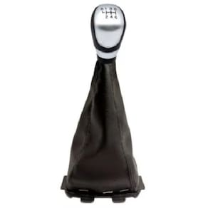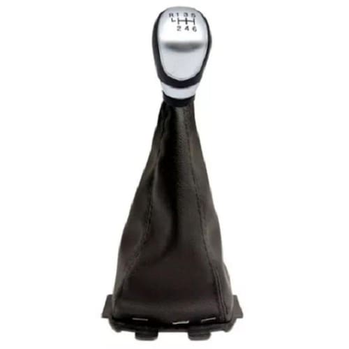 01 manopla prata + coifa de câmbio napa preta