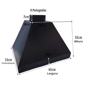 Coifa para Churrasqueira Pintura Eletrostatica Preto 65x53x52