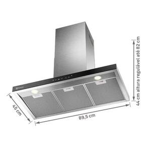 Esta coifa de parede de 90 cm em inox e ideal para fogoes de 5 e 6 bocas, equipada com inteligencia artificial para otimizar a eficiencia na succao de vapores e odores. Com uma potencia de 304 W e uma vazao de 800 m3/h, ela garante um ambiente mais limpo e agradavel na cozinha. Possui tres velocidades ajustaveis, permitindo controle total sobre a intensidade da succao. A coifa tem dimensoes de 44-82x89,5x45 cm e pesa 11,00 Kg, facilitando sua instalacao e adequacao ao espaco. O material em metal oferece durabilidade e a cor inox adiciona um toque de elegancia ao design. Inclui lampadas para melhorar a visibilidade e conta com filtro de carvao, que ajuda na purificacao do ar. A do fabricante e de 12 meses, assegurando tranquilidade e satisfacao no uso prolongado do produto. Marca: Não Informado Ean: 7909569444498
